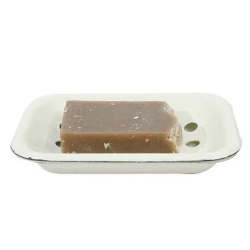 Distressed Enameled Soap Dish with Tray, Set of 2
