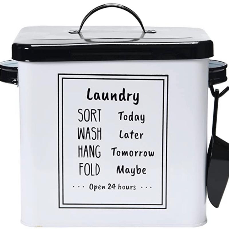 These metal laundry containers are a cute and fun way to keep your laundry room stylish