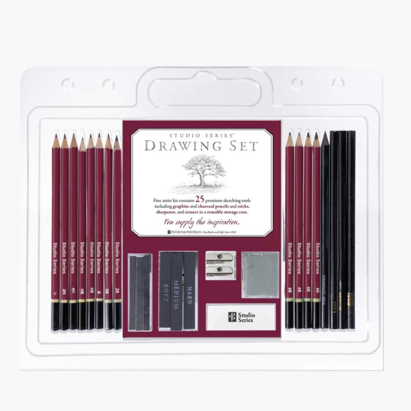 Ideal for novices, dabblers, and seasoned artists alike, the Studio Series Drawing Set contains 26 essential sketching tools, all in one handy reusable storage case. You supply the inspiration!