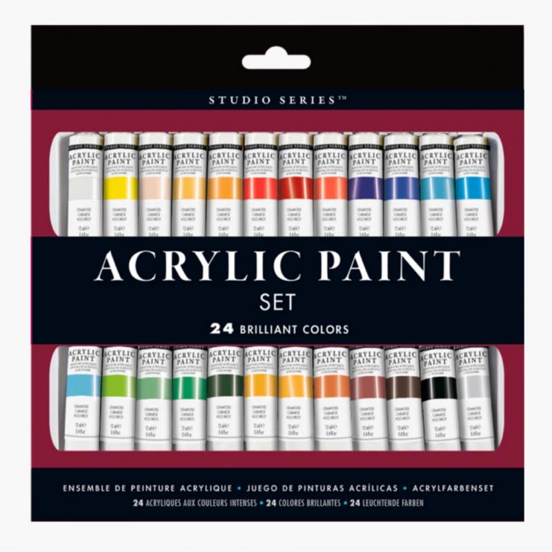 Here is a compact yet complete full palette of acrylic paints that's perfect for artists, students, and crafters!